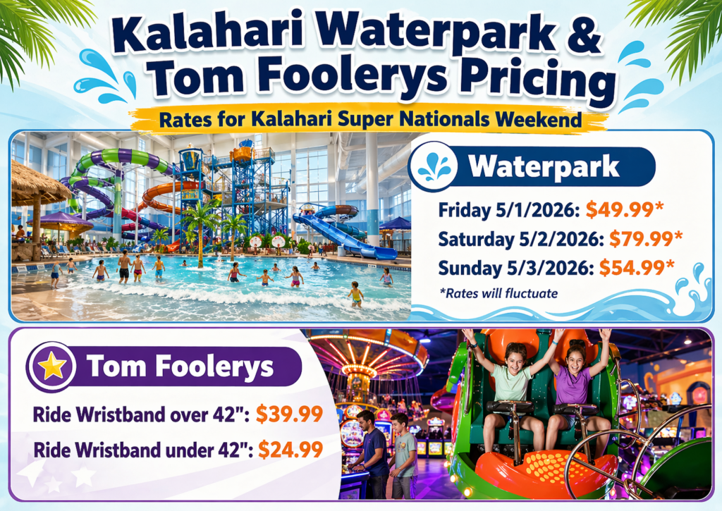 We are thrilled to partner with Kalahari Resorts to offer special discounted Waterpark and Tom Foolerys pricing for guests attending our Redline event who are not staying on property.
